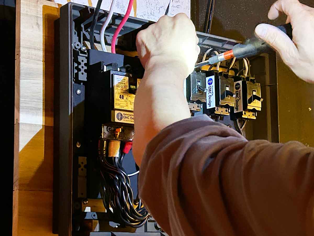 7回路のEMC分電盤を持つオーディオ専用電源工事は無事完了。
